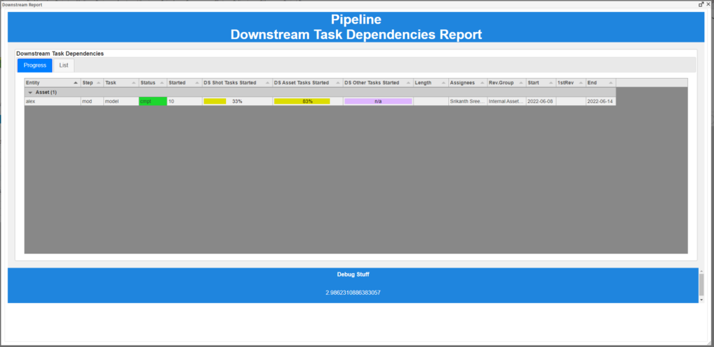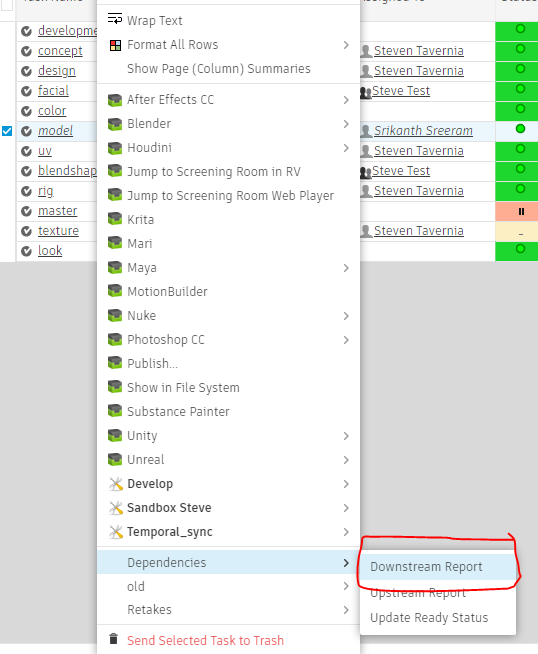 – (Recurse) Level: This shows many many levels downstream the task is from the selected task. For example, if the flow is model -> uv -> rig, and model is selected, uv is 1 level downstream and rig is 2 levels downstream.